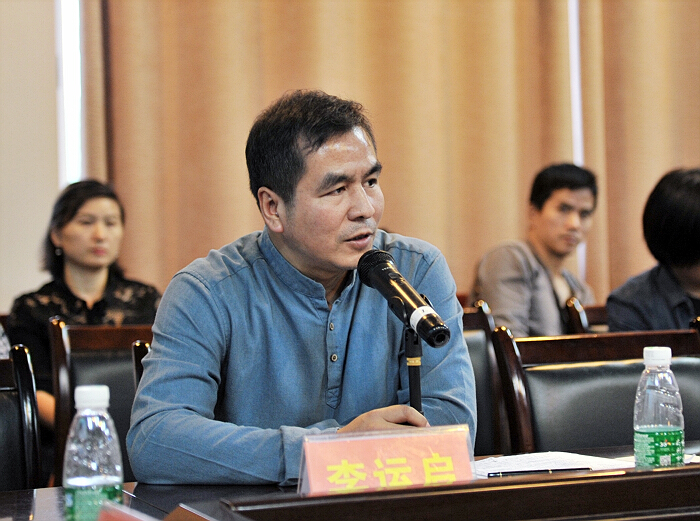市委宣传部杨铁桥副部长讲话,他说设计艺术家协会充满朝气,充满希望。今后要多参与湘潭的城市建设进程,为政府做好设计参谋。