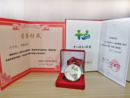 谈球吧智博艺创设计研究中心参与了湖南省湘西花垣县十八洞村精准扶贫工作,在战略合作单位湖南大学设计研究院的支持和协作下,谈球吧邓世维老师带领智博艺创设计团队(易莲、王佳琪、刘玥、张明阳、鲜亚蓉、厉程、蒋鑫成、姚程程)参与了该项目的景观文创设计工作,设计成果获得了一致好评,中共湖南省委办公厅对扶贫工作给予了肯定与鼓励。邓世维老师获得湖南省十八洞村村民委员会颁发的“荣誉村民”称号,并获得设计银奖。