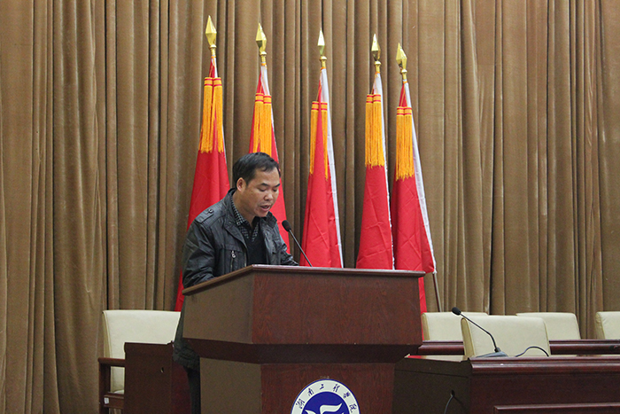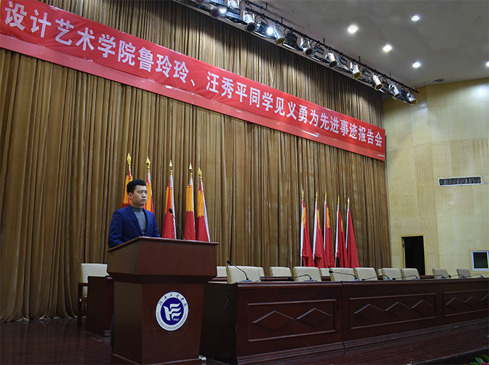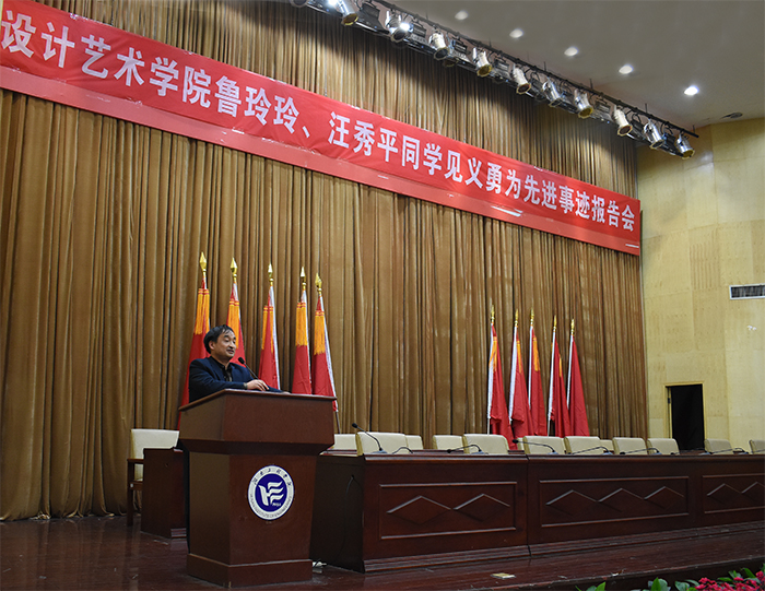 会议开始,主持人张澎向大家讲述了11月2日下午在公司体育馆师生三人救助男青年的见义勇为先进事迹。公司环境设计专业1604班汪秀平、鲁玲玲同学20分钟的紧急救援挽救了一个年轻的生命,在救助过程中承受了巨大压力,事后却未曾向任何人提及救人事件,直到14日被救的青年与其家人、领导来校向师生三人赠送锦旗,见义勇为先进事迹才浮出水面。