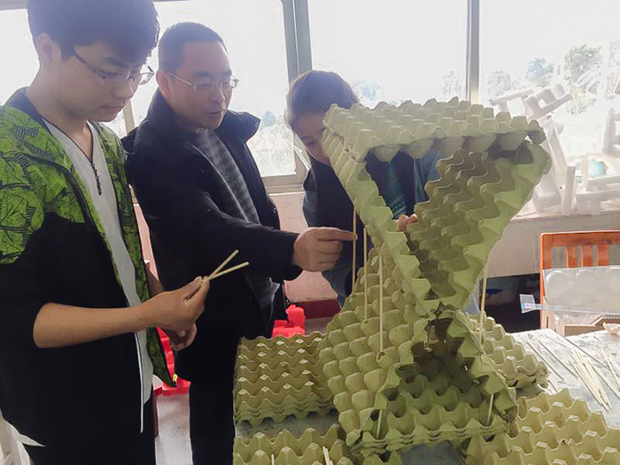 近日在谈球吧二楼大厅橱窗中举办了一场别开生面的艺术作品展览,展览的作品都是用日常生活用品或废弃物改造制作而成的,具有较强的现代设计感和鲜明独特的视觉效果,令观众耳目一新。这是环境艺术专业教学改革实践开设的一门新课程——“空间组合设计”首次教学成果的展示,作品都是由胡大虎老师指导的环艺1503班及1502班部分员工设计制作完成的。开学时,罗毅平副董事长就到教室专门来听了这门课的第一堂课,并在课后对教学给予了指导和肯定。在胡老师的启发和引导下,员工走出课堂,在生活中寻找设计材料和灵感,大家发挥丰富的想象力,利用包装泡沫块、旧轮胎、旧伞骨、尼龙绳、铁丝网等废旧材料,化腐朽为神奇,设计制作出一件件富有奇思妙想的空间组合设计作品。这些作品有的具有前卫形态的装置艺术效果,有的具有未来建筑概念特征,通过这门理论与实践紧密结合的课程学习,同学们不但提高了空间设计能力,还获得了较好的材料认知能力和动手制作能力,作品的展出也为今后相关课程教学实践提供了参考和示范效应。