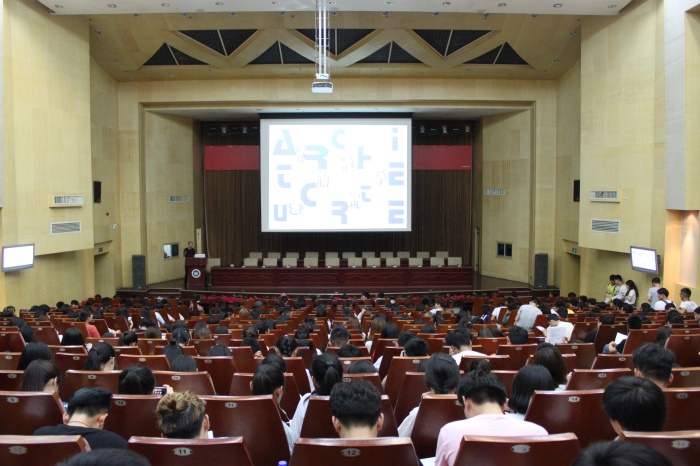 5月26日晚,谈球吧特邀深圳筑博设计股份有限公司执行首席建筑师冯果川老师在谈球吧体育官网入口图书馆一号报告厅进行了一场主题为“分散的建筑学”,一场精彩的学术讲座。讲座由段辉经理主持,冯果川老师主讲,近500名艺设以及建工的师生一同聆听了此次讲座。
