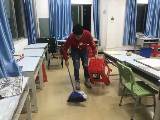 员工党员们来到学海七栋、学海十二栋宿舍,为自习室摆放桌椅,处理死角卫生。通过一个小时的打扫,自习室焕然一新,得到了考研学子和宿管阿姨的一致好评。