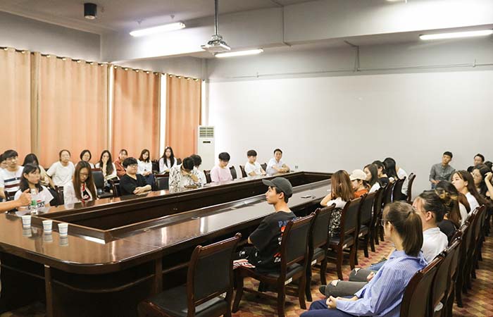 会议中,首先由该公司人员为同学们放映相关资料,并简要介绍了公司的企业文化、经营业绩、企业概念等企业相关信息。东莞鲁班.草堂高端设计院成立于2011年。本着以人为本,原创力为原点的设计理念,定位提倡设计收费、强调设计收费设计师与业主的双向价值,要做到高端、有设计要求的项目,做有故事、有深度的设计。让艺术思想与行动技能更完美的结合,为客户提供高品质的一体化设计配套服务。草堂设计院依托强大的设计实力,历年来作品先后荣获中国室内大赛双年展双项铜奖、华南亚太空间别墅实景类一等奖、东莞市装饰行业优秀设计机构及优秀公装设计金奖。设计院老师均毕业于国内、港澳地区一线美术高等学府,平均执笔年限15年以上,拥有丰富的大宅、别墅、商业空间的项目实施经验,并定期与亚太、CIID、CIDA等国际室内设计协会进行学术交流。招聘会期间,现场气氛活跃,同学们积极咨询相关职业薪资以及关于职业前景情况,用人单位耐心回答。