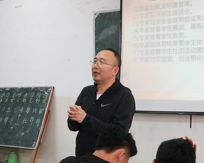 会上,段辉作动员讲话。他希望,全院上下要将思想和行动统一到迎评促建工作的总体部署上来,落实责任,上下一心,团结协作,扎扎实实做好各项迎评工作,用最好的状态,最好的环境,最好的氛围,通过共同努力,实现以评促建的目标,争取优异的评估结果,为圆满完成本科教学审核评估任务而努力。