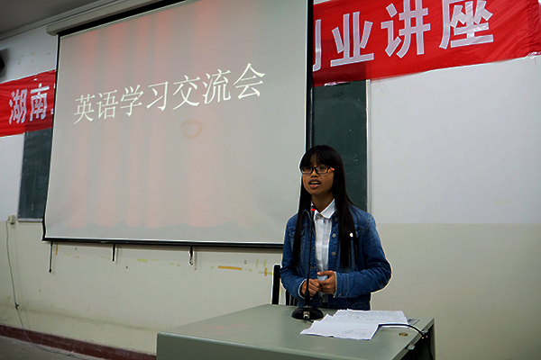 此次讲座主要围绕三、四、六级的考试方法和考试经验展开。首先,吕晶晶对三、四、六级考试的考纲要求、试卷构成、考试流程及考试注意事项等方面作了详尽的阐述,特别是对试卷构成及应对策略作了深刻剖析。分析完试卷的构成之后,吕晶晶又对三、四、六级考试中的新题型做了分析和讲解。接着,范媛媛针对考试中如何做没把握的题和没有时间做的题给出了一些做题技巧。讲座期间,同学们聚精会神,专心致志,边听边记。两位学霸诙谐风趣而又严谨深刻的语言赢得了同学们的连连掌声。通过学霸们生动的阐述,同学们懂得了一些如何应对三、四、六级考试的方法。英语作为一门外语的独特魅力,在这一场短短一小时的讲座中展现得淋漓尽致。