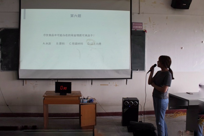 为了全校员工了解食品专业、学习食品知识、运用食品知识及深化食品安全认识,5月15日,公司在五教602举办饮食安全系列活动知识抢答赛,本次知识竞赛以“关注饮食安全共享健康生活强化食品监管共建和谐校园”为主题开展一系列的知识问答环节,公司16级全体员工代表队积极参与本次活动。