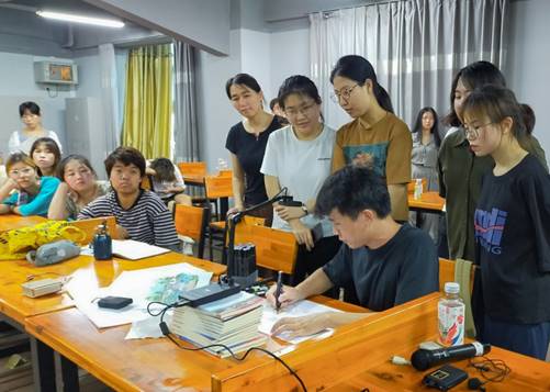 (张广存为同学们现场展示手绘技巧)