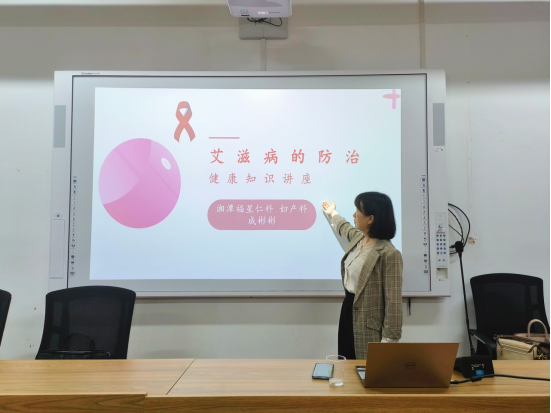 为了让同学们深入了解艾滋病及传播、预防相关知识,公司教工第二党支部于4月18日晚上七点在五教108室开展艾滋病防治知识讲座。本次活动邀请湘潭福星仁科医院妇产科主任成彬彬作为主讲,员工工作办公室张超主持,公司部分员工参加。