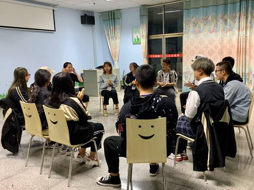 活动由公司心理工作专干黄镜燕引导。伴随着轻扬的乐曲,活动有秩序地开展。在引导师的引导下,同学们依次打着节奏以音乐的形式介绍自己的姓名和最喜欢的美食。随后,同学们根据引导,由简到繁琐,通过歌唱和肢体语言的形式,并借助非洲鼓一起演绎了一首非洲舞曲。最后,同学们围坐一团,纷纷分享自己的活动感受,认为这种有趣的室内活动帮助了自己放松身心,遗忘了一天中堆积的负面情绪。同时,愉快的团体活动进一步增进感情同学间的友谊,大家脸上洋溢着欢快的笑容,生分的同学关系也一步步破冰,直到活动结束同学们脸上还流露着意犹未尽的笑容。