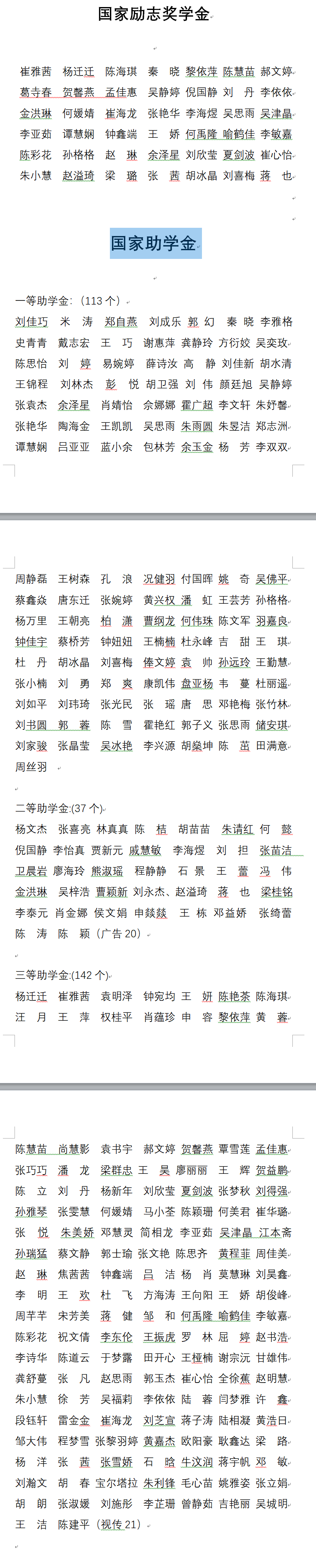 根据财政部、教育部、人力资源社会保障部、退役军人部、中央军委国防动员部《员工资助资金管理办法》(财科教〔2019〕19号)、中共中央、国务院《深化新时代教育评价改革总体方案》(中发〔2020〕19号)、《关于做好2021年普通高校国家奖助学金评审工作的通知》(湘学助〔2021〕28号)、《谈球吧体育官网入口国家励志奖学金评审办法》(校教字〔2021〕64号)、《谈球吧体育官网入口国家助学金评审办法》(校教字〔2021〕63号)等文件的精神精神和要求,公司认真组织、安排国家励志奖学金、助学金的评审工作,制定相应评审细则,并要求各班成立以班主任为组长的7人评审小组负责本班员工的国家励志奖学金、助学金评审工作。公司坚持公开、公平、公正的原则,实行等额评审,经公司员工奖学金评定工作领导小组审核,党政联席会议审定,评选出崔雅茜等42名同学获得国家励志奖,刘佳巧等113名获一等助学金,杨文杰等37名获二等助学金,杨迁迁等142名获三等助学金,具体名单附后。公示时间为2021年10月22日到10月28日,公示期五天,如有异议,请与学办联系。